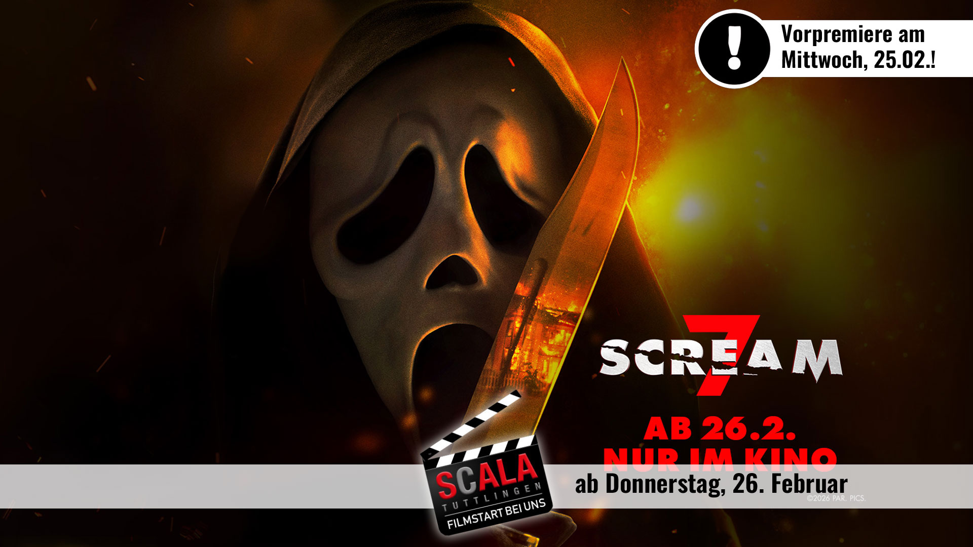 am Mittwoch, 25.02. Weitere Infos auf "ArtHaus & Sondervorstellungen im Scala Kino"Scream 7