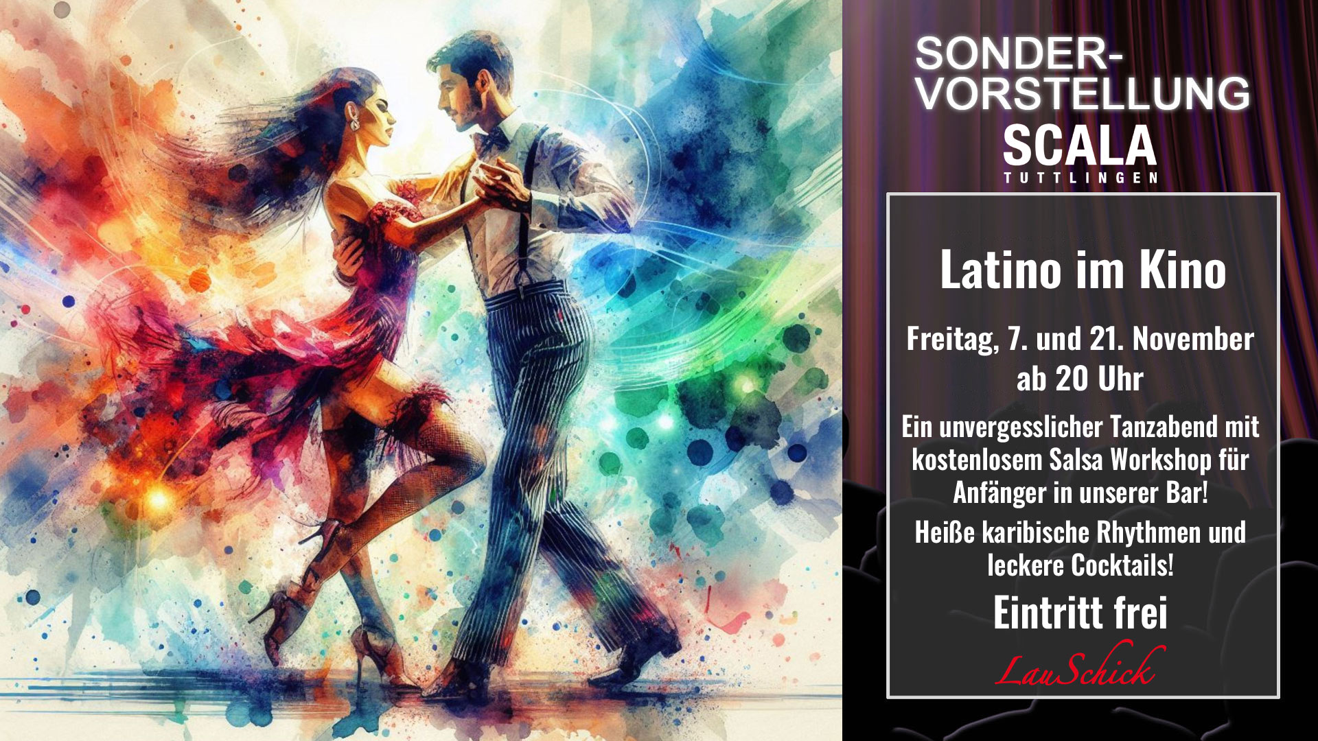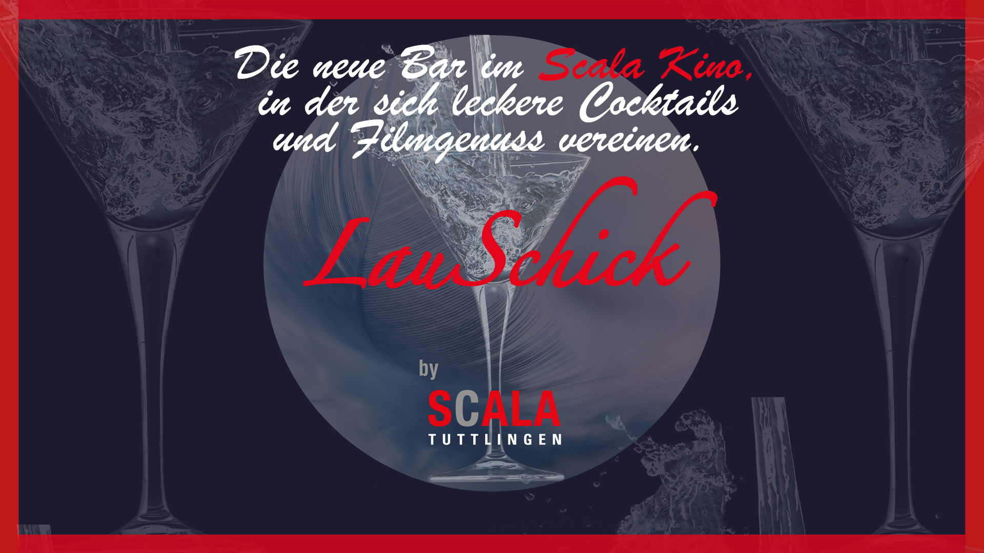 Wir erwarten euch im ersten Stock des Scalas mit Blick auf die Donau in entspannter Atmosphäre mit unseren neuen Cocktailkreationen. Vor oder nach dem Film noch enstpannt zusammensitzen oder einfach so vorbeikommen - auch ohne Film!