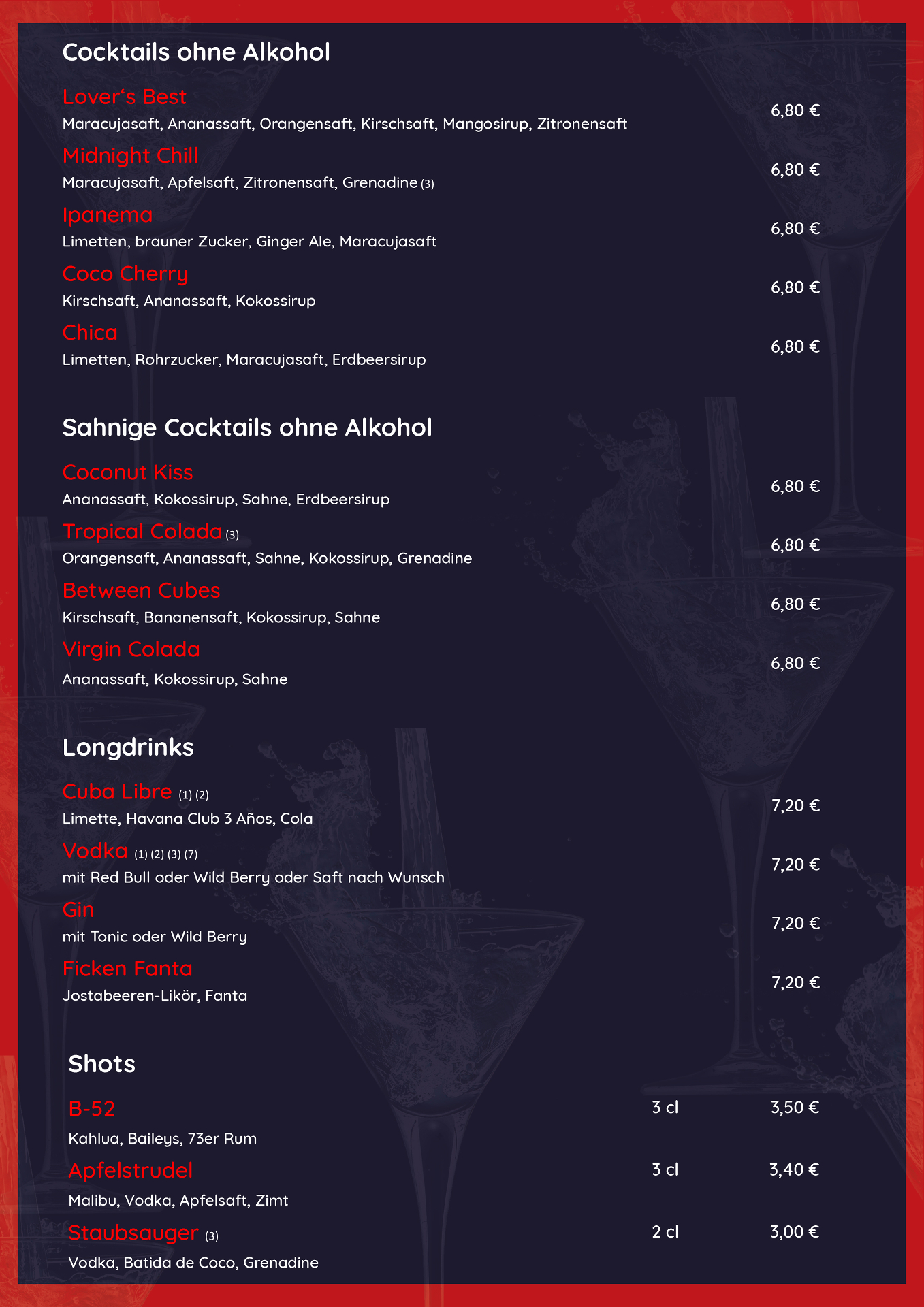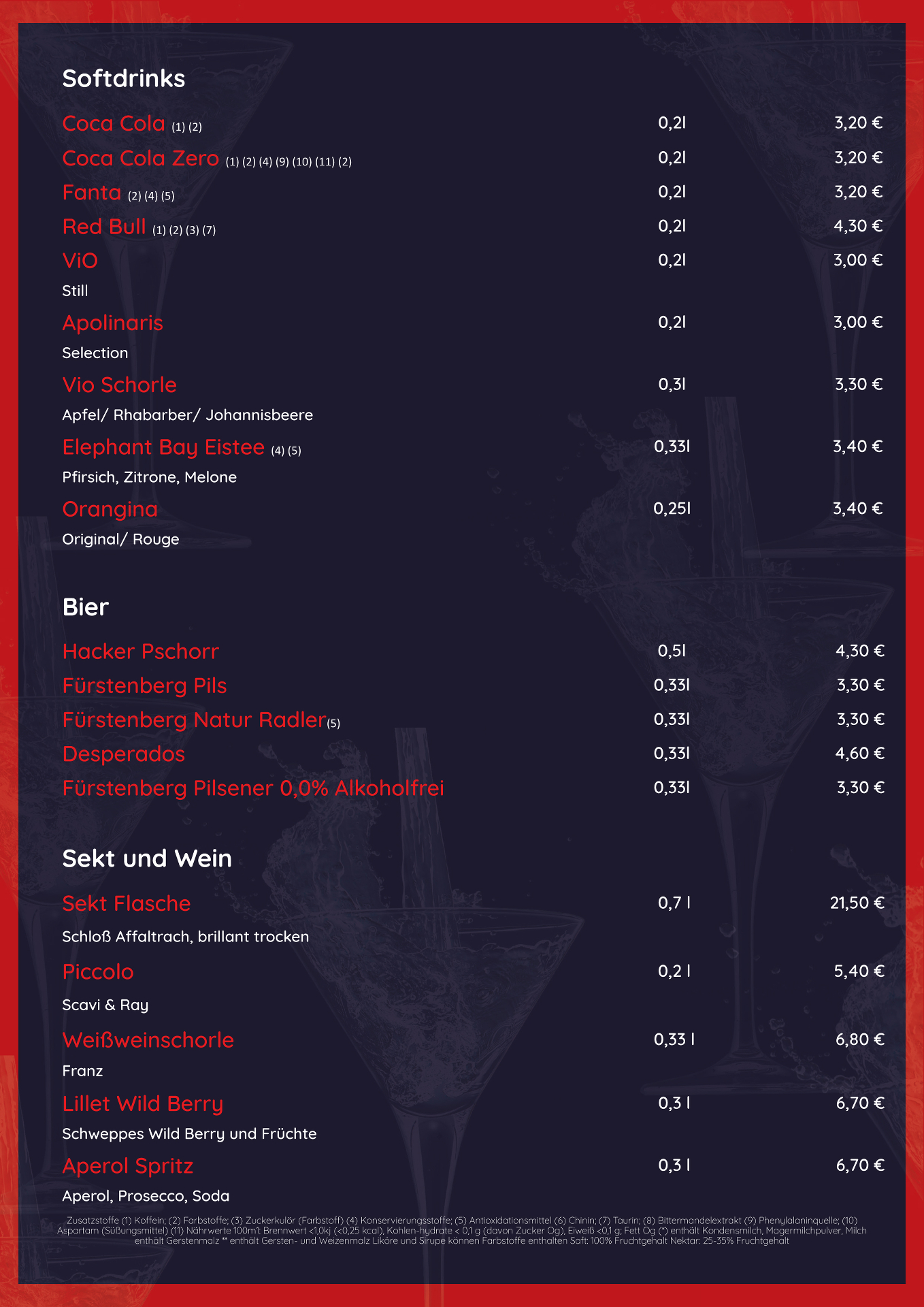 Freitag, Samstag und vor Feiertagen 18 - 24 Uhr