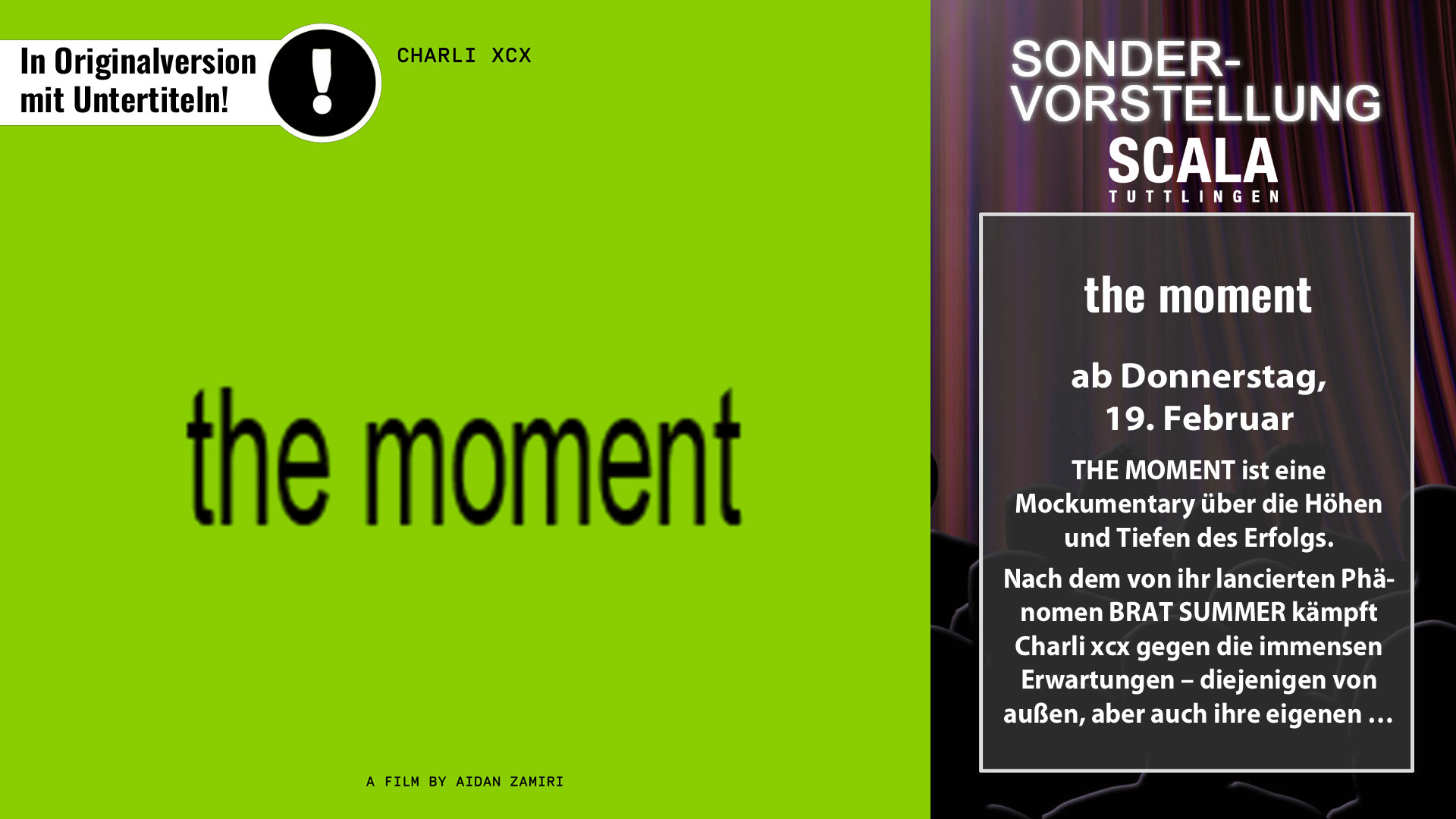 am Mittwoch, 18.02. Weitere Infos auf "ArtHaus & Sondervorstellungen im Scala Kino"Scala Event - The Moment